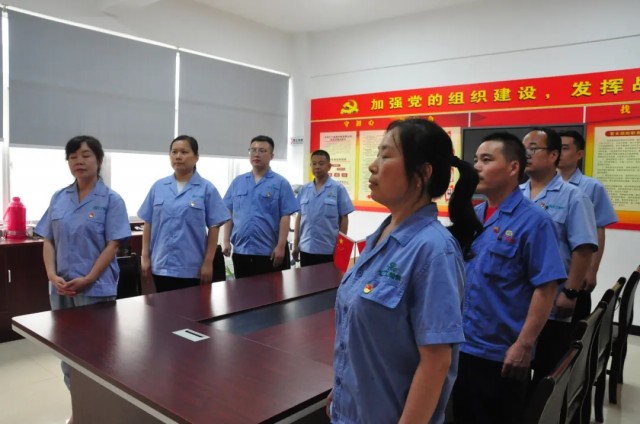 在董小輝的帶領下,全體黨員莊嚴舉起右手,重溫入黨誓詞,鏗鏘有力的聲音響徹云霄,心中的理想和信念更加堅定。