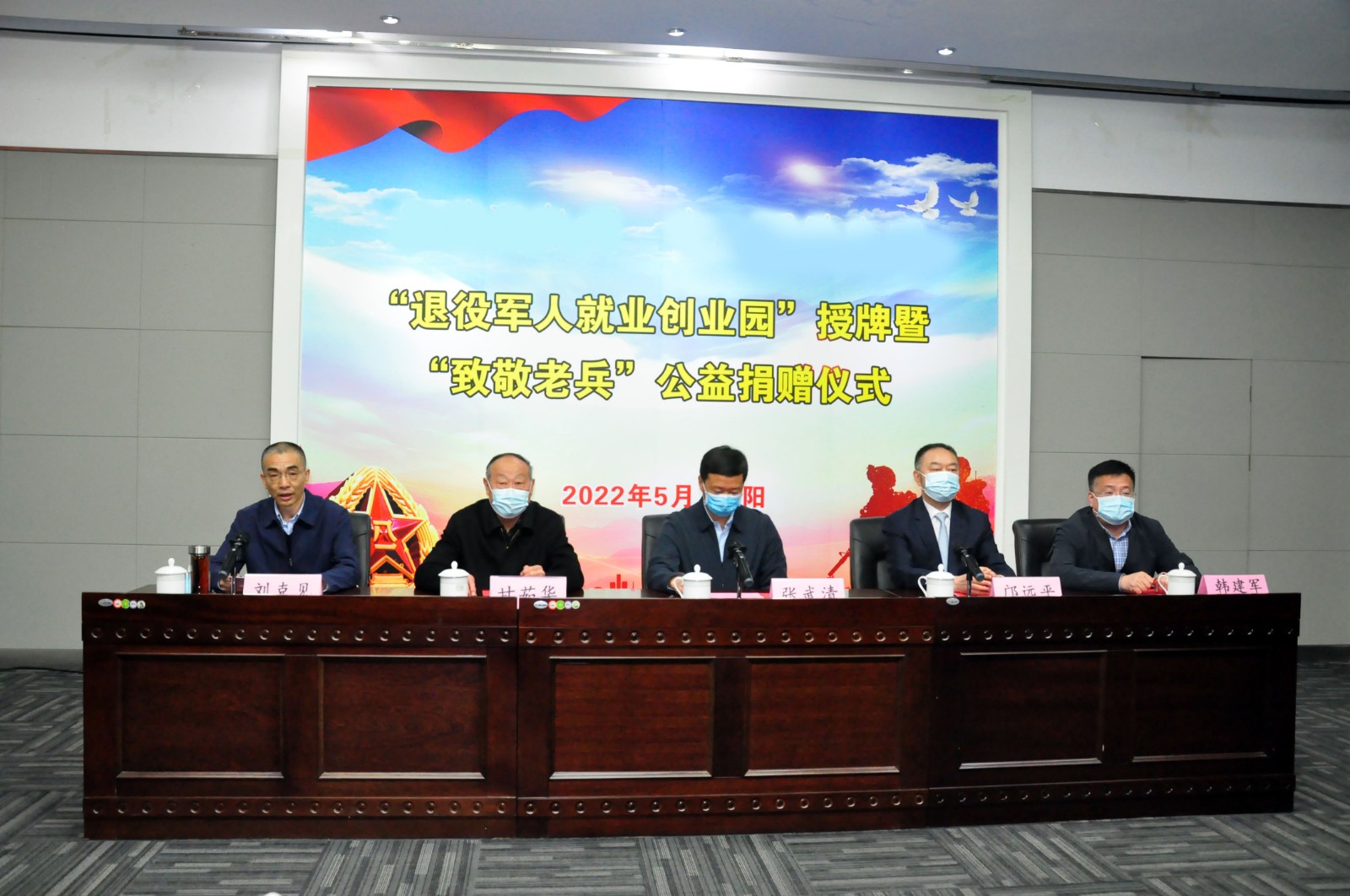 5月9日上午,洛陽市"退役軍人就業創業園"授牌暨"致敬老兵"公益捐贈儀式在炎黃科技園舉行。廣東省中山市國美電器制造有限公司(簡稱中山國美電器)、炎黃科技園建設有限公司(簡稱炎黃科技園)等企業向洛陽市退役軍人服務體系及退役老兵捐贈總價值410萬元的愛心物資。